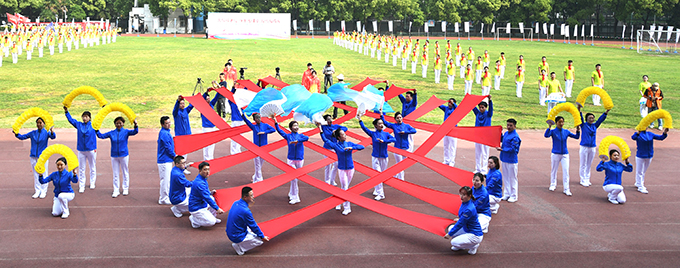 上午8時(shí)許,在雄壯的《運(yùn)動員進(jìn)行曲》伴奏下,6名護(hù)旗手組成的國旗方隊(duì)和19支代表隊(duì)方隊(duì)先后接受大會檢閱,運(yùn)動員們步伐整齊、精神抖擻、口號嘹亮、動作新穎,充分展現(xiàn)了城投職工良好的精神風(fēng)貌,給大家留下了深刻印象……隨著公司董事長金國發(fā)宣布本次賽會開幕,600名職工帶來了新編創(chuàng)作《我和我的祖國》、《咱們工人有力量》大型團(tuán)體操展示,伴隨著激昂的旋律,他們動作整齊劃一、協(xié)調(diào)舒展,充分展現(xiàn)了城投職工愛黨愛國愛企業(yè)、團(tuán)結(jié)奮發(fā)的精神面貌。