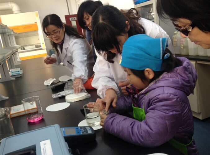 參觀展示館后,小記者們前往此次“親水之旅”的最后一站――市水務(wù)集團(tuán)水質(zhì)監(jiān)測(cè)中心。一位穿著白色實(shí)驗(yàn)服的叔叔早已在中心樓下等待孩子的到來(lái),小記者們看著這位衣著和醫(yī)生一樣的叔叔,紛紛躲在了家長(zhǎng)和老師的身后,怯生生地問(wèn):“這里是醫(yī)院?jiǎn)??怎么這位叔叔穿著醫(yī)生的衣服呀?”這位“醫(yī)生”叔叔聽(tīng)后笑著說(shuō):“這里是水務(wù)集團(tuán)的水質(zhì)監(jiān)測(cè)中心,也可以說(shuō)是‘醫(yī)院’,但不是給人看病的喲,而是給自來(lái)水檢查‘身體’和看病的地方喲!”聽(tīng)完“醫(yī)生”叔叔的解釋后,小記者們更加好奇了,迫不及待地想去一探究竟。小記者們來(lái)到了監(jiān)測(cè)中心的主體樓層,該中心副主任鮑潔接待了他們。為了讓孩子們能聽(tīng)懂專(zhuān)業(yè)的水質(zhì)檢測(cè)知識(shí),不僅為他們講解了水質(zhì)檢驗(yàn)的用途和常用方法,還帶著他們參觀了實(shí)驗(yàn)室和儀器室。在實(shí)驗(yàn)室里,鮑主任手把手地教小記者們做水中余氯的實(shí)驗(yàn),當(dāng)看到取樣瓶中的水樣經(jīng)過(guò)藥劑作用后,從透明變?yōu)樽霞t色,小記者們的眼神中充滿(mǎn)了好奇,興致勃勃地詢(xún)問(wèn)著原因。鮑主任耐心地一一作答;鮑主任還帶著他們參觀了原子吸收室、油分析室、污水監(jiān)測(cè)室等實(shí)驗(yàn)室,為小記者們講解各種檢驗(yàn)儀器的用途和操作方法??粗@些“機(jī)器手”完成自動(dòng)取樣、滴入藥劑、分析數(shù)據(jù)等步驟后,小記者們驚嘆了:“原來(lái)有這么多高科技的儀器為自來(lái)水的水質(zhì)安全護(hù)航把關(guān)啊!”