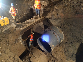 地鐵三號線雙墩站位于建設(shè)大道北側(cè)即鐵道部大橋工程局橋梁科學(xué)研究院門前,此次遷改擬拆除原D1220管道45米,新裝D1220*12管道72米。該工程位于建設(shè)大道和漢西路交匯處,由于地鐵施工打圍,由二環(huán)線往古田方向全部車流都要經(jīng)過此次遷改管位,所以該工程主體施工均在夜間進行,施工難度大,交通疏導(dǎo)困難。