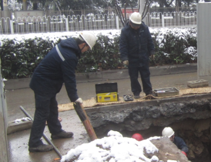 2016年1月22日,恰逢武漢氣溫驟降,雨雪紛飛,下午6點,置換工作組對該小區(qū)實施停氣,隨后對氣化站出站管注水置換、封堵。19點30分,對戶內(nèi)調(diào)壓器進行調(diào)壓。晚10時左右,新建中壓管線、調(diào)壓站箱與液化氣管網(wǎng)碰頭完工后,天然氣置換工作開始。此時,室外北風呼嘯,氣溫一直在零度以下,但施工人員不畏嚴寒,積極配合,認真細致地完成了小區(qū)內(nèi)部管線置換,經(jīng)過兩個多小時的堅守和多次檢測,確認小區(qū)置換合格。