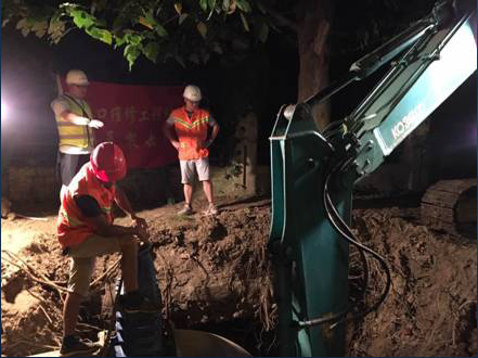7月25日,水務(wù)集團(tuán)總經(jīng)理黃思了解情況后,趕到工地作出要求:一是立即鋪設(shè)一條DN600的臨時(shí)供水管道,保證正常的供水;二是將漏水的DN800管道斷開(kāi),對(duì)管道上面的違章用房下達(dá)整改通知書(shū),徹底消除對(duì)兩條鐵路的安全隱患。7月26日,江城驕陽(yáng)似火,氣溫超過(guò)37℃,漢口維修工程處施工人員進(jìn)駐現(xiàn)場(chǎng),揮汗如雨、開(kāi)始鋪設(shè)臨時(shí)供水管道。此次施工時(shí)間緊張,安裝管道施工難度較大,該處位于堤路邊鐵路橋下,除一根直線管道外,還需安裝一處爬梯管道。因日常車(chē)輛行駛較多,為避免影響正常的交通秩序,按照交管局的要求,漢口維修工程處每天安排人員24小時(shí)值守,日夜施工。白天烈日烘烤,晚上連續(xù)施工,人員三班輪崗,終于以最快的速度完成臨時(shí)管道的安裝。至7月29日,130米直徑600毫米管道和150米直徑200毫米管道安裝完畢。經(jīng)過(guò)連接各個(gè)配水管點(diǎn)、沖洗、消毒,到8月1日上午10時(shí),漏水管道廢除,臨時(shí)管道啟用,危及高鐵安全的漏水問(wèn)題得以徹底解決。