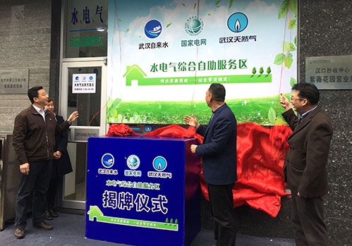 武漢市水、電、氣三家公共服務(wù)企業(yè)首次實(shí)現(xiàn)營(yíng)業(yè)廳資源共享,開(kāi)辟了“水電氣綜合自助服務(wù)區(qū)”,方便市民“一站式”辦理水電氣繳費(fèi)、圈存、查詢等業(yè)務(wù)。3月24日上午9點(diǎn)半,水電氣聯(lián)合召開(kāi)發(fā)布會(huì),三家企業(yè)領(lǐng)導(dǎo)共同揭牌。