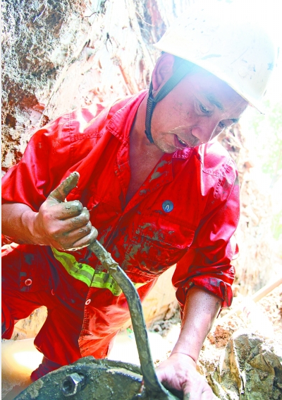 昨天中午12點(diǎn)多,武漢市天然氣公司巡線(xiàn)員金城在學(xué)府北路一處工地巡檢時(shí),發(fā)現(xiàn)該處中壓燃?xì)夤艿来嬖诼猬F(xiàn)象。天然氣公司緊急調(diào)動(dòng)兩臺(tái)搶修車(chē)和一臺(tái)挖機(jī)到現(xiàn)場(chǎng),經(jīng)過(guò)開(kāi)挖,詳細(xì)排查,找到漏氣源頭來(lái)自燃?xì)夤艿婪ㄌm處。由于工地基坑狹窄,有兩米多深,只容一人作業(yè),燃?xì)鈸屝迒T黃忠明換上套鞋,由兩名工作人員協(xié)助慢慢放下。黃忠明一個(gè)一個(gè)更換螺絲,一個(gè)一個(gè)擰緊。約40分鐘后,搶修完成,黃忠明喘著粗氣,坐在基坑旁的小樹(shù)下,倒出鞋里的積水,還開(kāi)玩笑說(shuō):“腳最涼快?!?br style="line-height: 150%; font-size: 14pt" /> 在他們的緊急處理下,周邊大片居民用氣未受影響??崾顣r(shí)節(jié),天然氣公司300多名巡線(xiàn)員加強(qiáng)巡查,重點(diǎn)監(jiān)護(hù)在建工地,確保7500多公里燃?xì)夤芫W(wǎng)運(yùn)行安全。