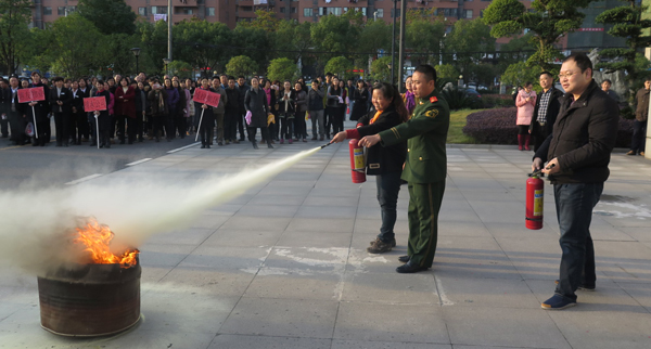 演練活動邀請了武漢市消防支隊特勤中隊作全程技術指導。具有豐富實戰(zhàn)經驗的消防員為大家講授消防安全基本常識,演示室內消防栓和滅火器的使用方法,講解了氣墊逃生要領。16點整,消防警報驟然響起,應急廣播隨即啟動,辦公樓大廳和樓道內濃煙四起,辦公大樓全體工作人員及辦事人員按照疏散逃生要領,分別從大樓東、西兩側緊急通道迅速疏散。所有人員僅用時8分鐘就全部撤離至指定的疏散集結點。隨后,參演人員按照動作要領,分別實際操練了消防水帶連接、油盆滅火等消防技能。