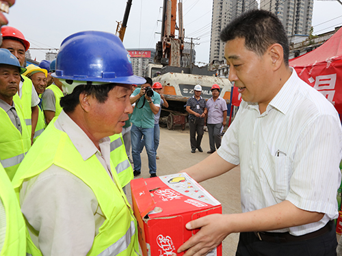 彭浩表示,今天受萬勇市長委托,看望城投公司生產建設一線的同志們,感謝你們在高溫酷暑里堅守在生產建設一線,為了市民安全用水用氣、為了城市建設所作的積極奉獻!他勉勵大家繼續(xù)發(fā)揚這種不怕高溫酷暑、克難奮戰(zhàn)的精神,再接再厲,為城市的發(fā)展再作貢獻。