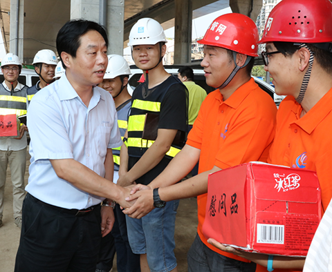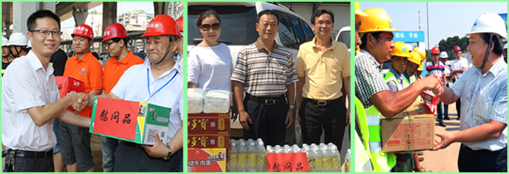 連日來,氣溫節(jié)節(jié)攀升,酷暑考驗(yàn)著堅(jiān)守在工作一線的廣大干部職工,更牽動著集團(tuán)公司領(lǐng)導(dǎo)們的心。7月28、29日,公司董事長金國發(fā),總經(jīng)理李兵、黨委副書記吳文等領(lǐng)導(dǎo)班子成員分別帶隊(duì)赴三環(huán)線南段綜合改造工程、南湖出江通道工程和長江干堤諶家磯團(tuán)鳳灣段等27個(gè)現(xiàn)場,看望慰問了一線人員,送去了飲料、綠豆、白糖等防暑降溫物資。
