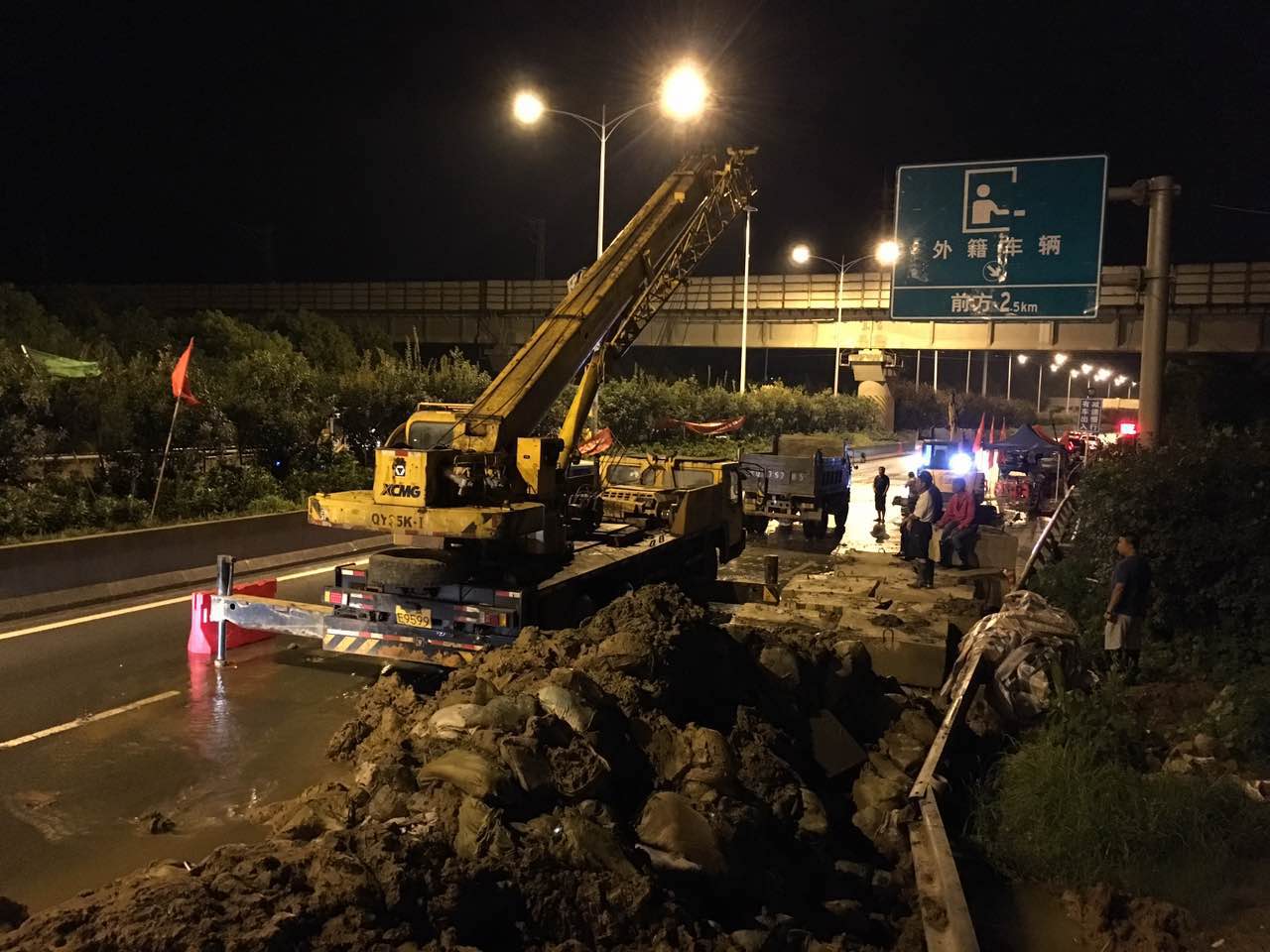 7月20日深夜的三環(huán)線小河橋一派忙碌