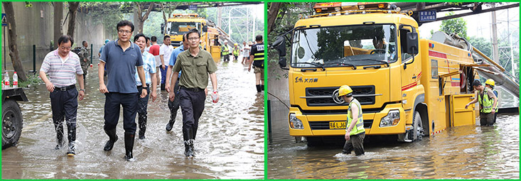 7月7日上午,在接到集團公司指令后,水務(wù)集團長江隧道公司立即將在武昌區(qū)域排漬接近尾聲的大型抽排設(shè)備“龍吸水”派往青山區(qū)21號公路漬水段。中午近13時到達(dá)現(xiàn)場后,集團公司總經(jīng)理李兵及總經(jīng)理助理陳春保立即向小分隊布置了搶排工作任務(wù),勉勵大家發(fā)揚不怕苦不怕累的硬骨頭精神,繼續(xù)奮戰(zhàn),為保衛(wèi)市民的財產(chǎn)安全和城市安全再作貢獻。橋建集團搶險小分隊與“龍吸水”小分隊進行了對接,一起踏水進行實地勘察后,安排10多名隊員各就各位。這些隊員在其他地點排漬,連早飯都沒顧得上吃,但是個個仍然精神抖擻,有條不紊地開始忙碌起來。