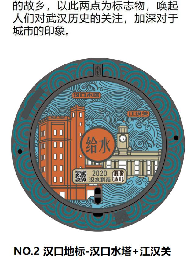 除了外形新穎,“漢水”系列文化井蓋還非常智能,每個(gè)文化井蓋都設(shè)計(jì)了獨(dú)立二維碼,通過手機(jī)掃描,可看到圖案中對應(yīng)地標(biāo)建筑的人文故事、地下供水設(shè)施情況及供水服務(wù)信息等。同時(shí),如后期通過專業(yè)軟件掃描二維碼,還可以查詢到供排水企業(yè)使用的地理信息編碼,了解該井蓋的建設(shè)時(shí)間、井下設(shè)備狀況、管道設(shè)施情況、相關(guān)維護(hù)信息等一系列資料,方便產(chǎn)權(quán)單位管理及維護(hù)。